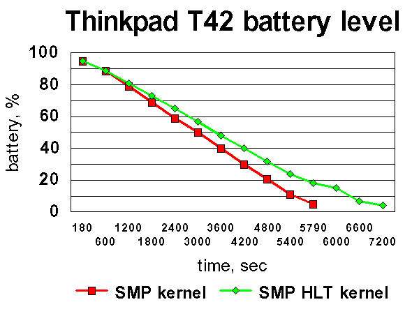 SMP HLT kernel prolongs life of battery (additional 15-20 minutes)